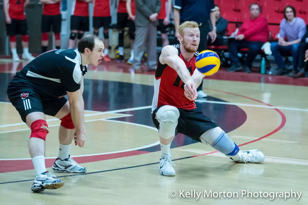 Taylor Howe led the Wesmen attack with 10 kills. Casey Schouten finished with nine kills and Brendan Thielmann added six. Setter Mikael Clegg had 29 assists and three blocks. Logan Brennan led the team in digs with seven.